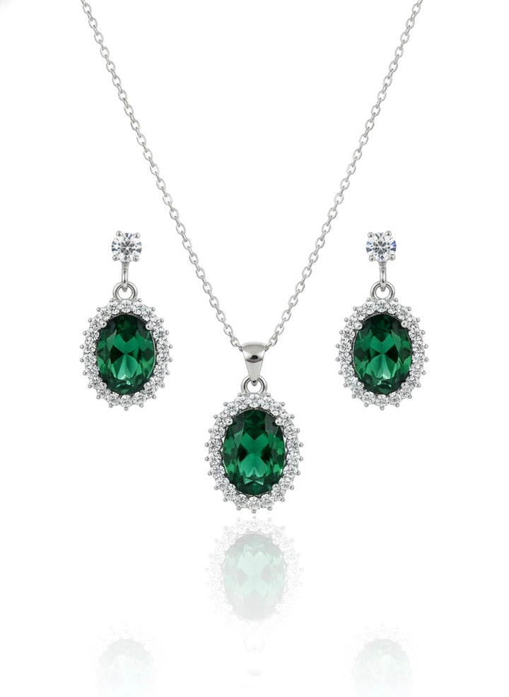 Green Diamond Silver Jewelry Set – A Touch of Enchanted Elegance
